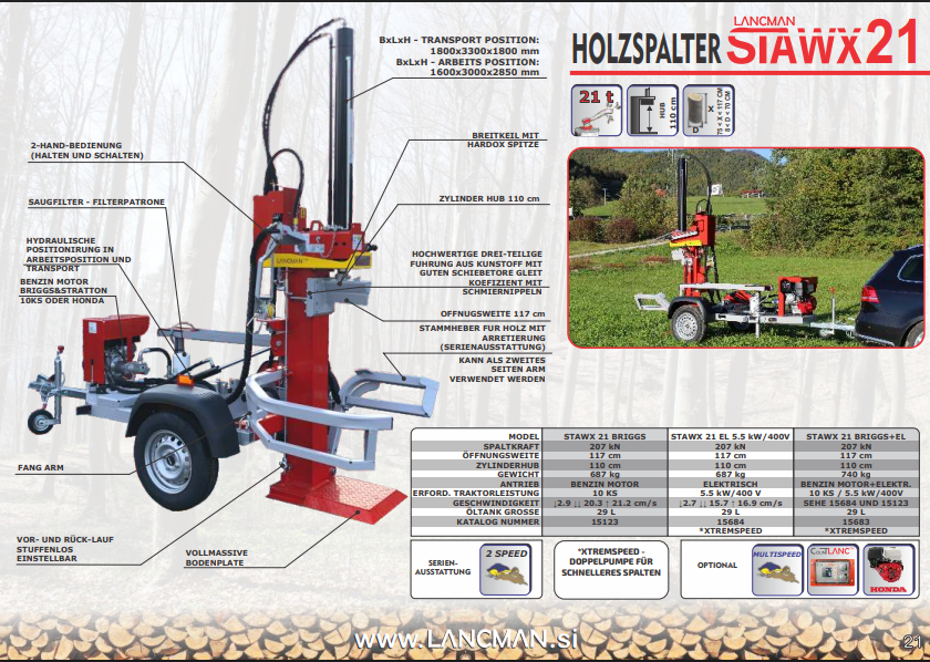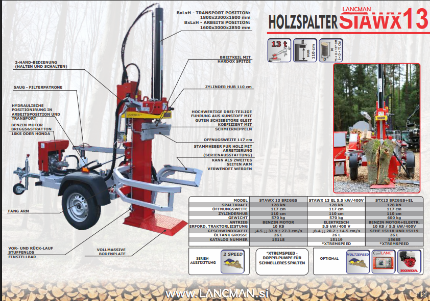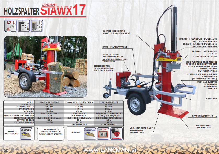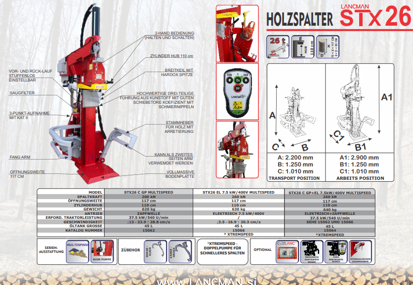 PROFESSIONELLER SENKRECHT-HOLZSPALTER LANCMAN STX 26 MULTISPEED – das stärkste Modell der STX-Serie
