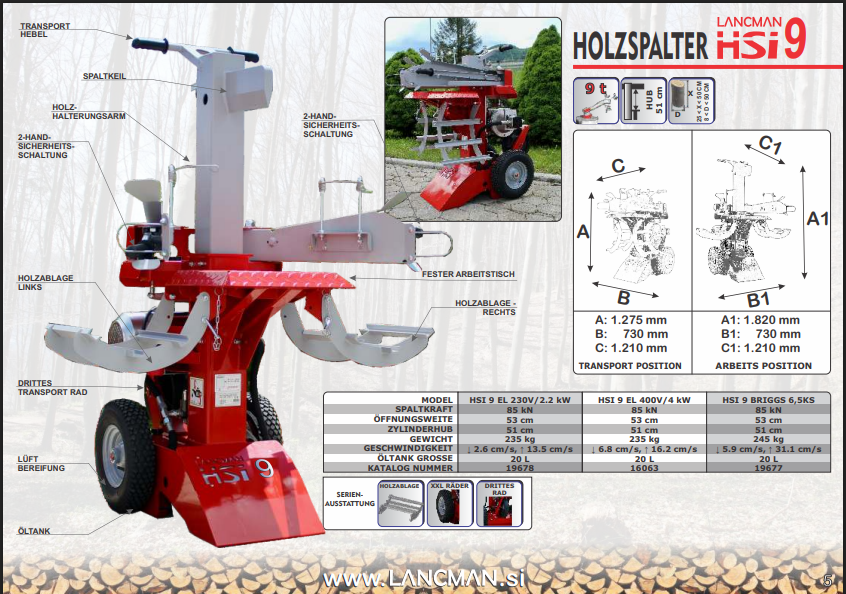 Der LANCMAN HSI-7 EL wird gemäß europäischen Sicherheitsstandards hergestellt und ist mit Schutzelementen ausgestattet, die ein sicheres Arbeiten gewährleisten. Er ist eine ausgezeichnete Wahl für alle, die schnell und mühelos Brennholz für Ofen oder Kamin vorbereiten möchten.