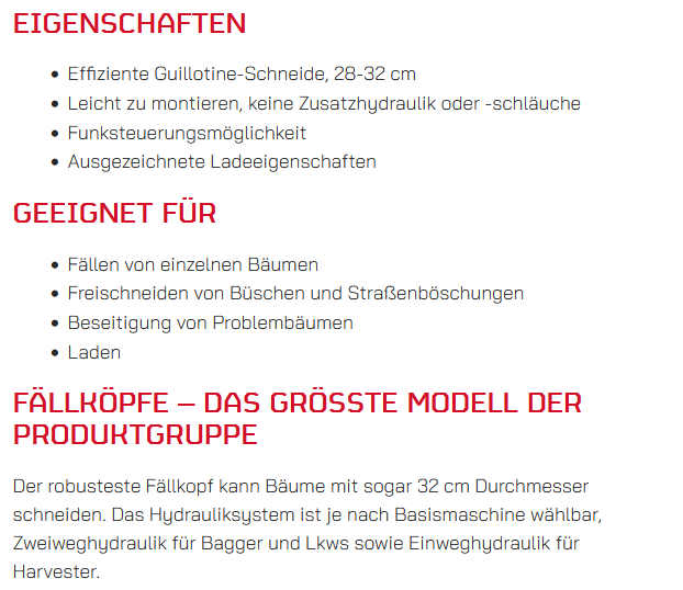 Geeignet u.a. für Erstdurchforstung, Beseitigung von Problembäumen, Freischneiden von Stromlinien, Straßen-, Eisenbahn- und Feldböschungen