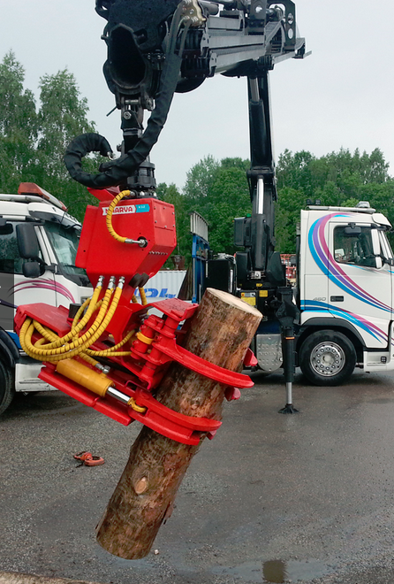 Der Naarva K32-Fällkopf mit Naarva-Funksteuerung verleiht den Lkw-Ladekränen viele neue Einsatzmöglichkeiten:
