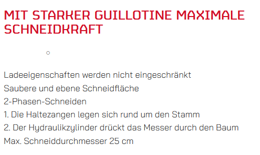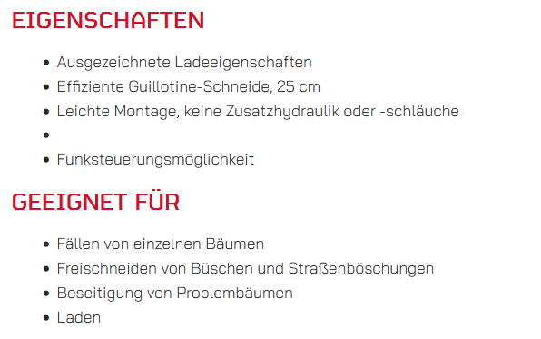 Geeignet u.a. für Erstdurchforstung, Beseitigung von Problembäumen, Freischneiden von Stromlinien, Straßen-, Eisenbahn- und Feldböschungen.