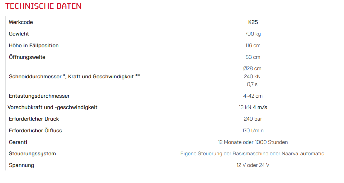- Die Öffnungsweite der Entastungsmesser beträgt 825 mm