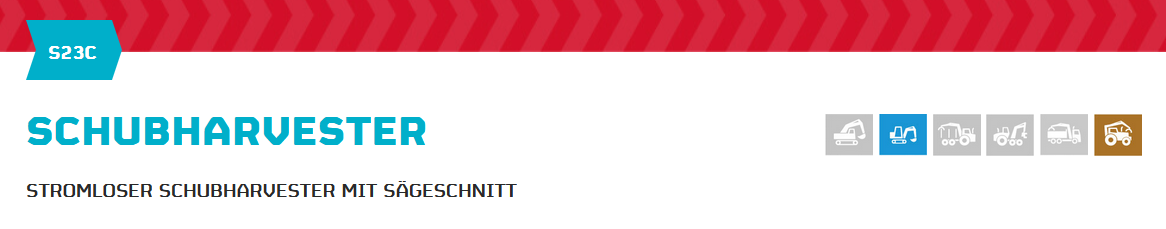 Die Modelle S23 und S23C sind leicht und einfach zu montierende, stromlose Schubharvester. Mit S23 können Sie fällen, entasten, hacken und bei Bedarf noch in Holzscheite mit bestimmtem Maß spalten. S23C ist mit einer Schneidsäge ausgestattet und eignet sich besonders zum Schneiden von hartem Holz.