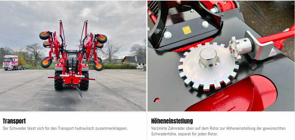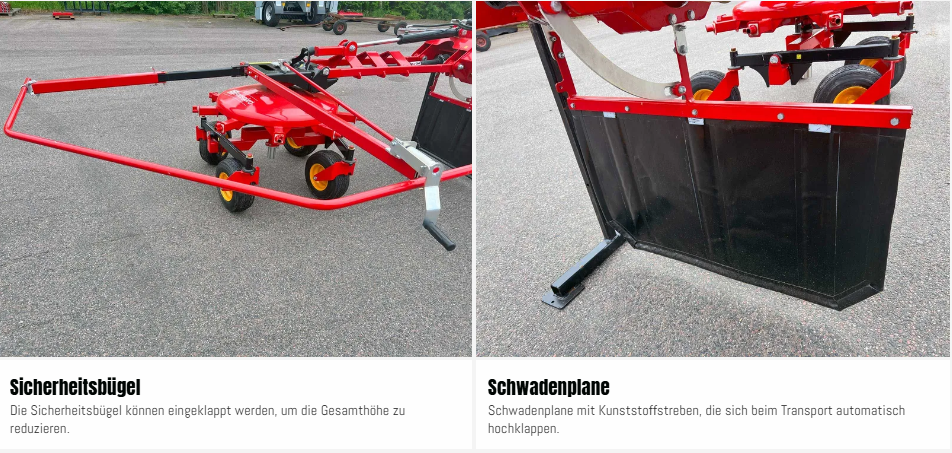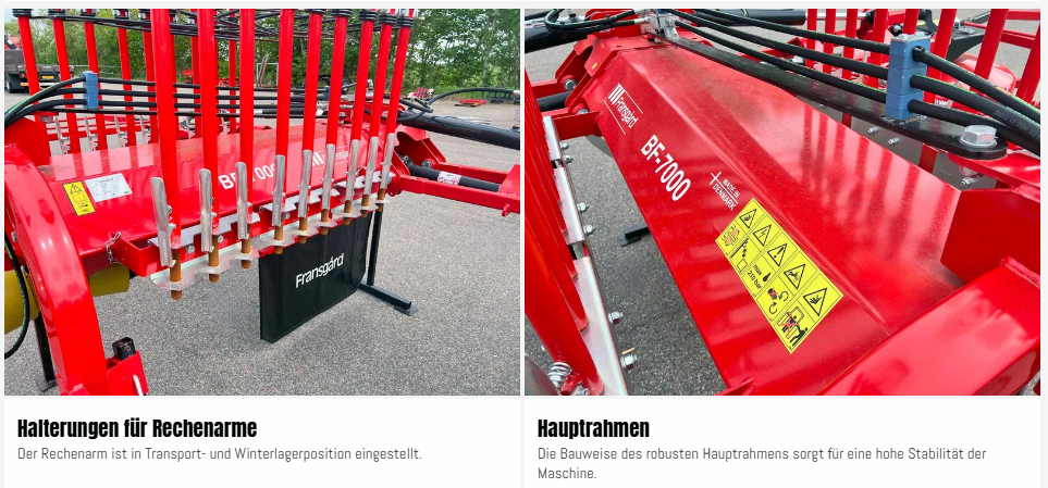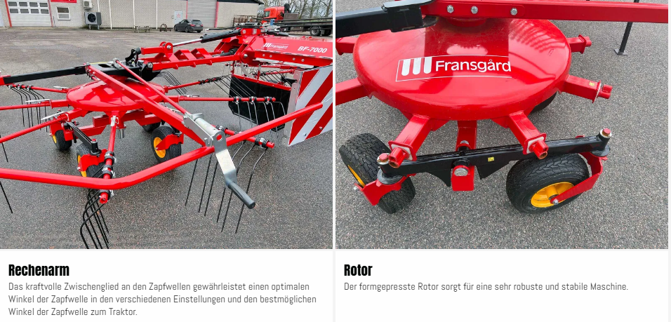 Der doppelte Rotorschwader BF-7000 ist mit einer Arbeitsbreite von 7 m eine gute Alternative zu einem gezogenen Schwader. Der aufgehängte BF-7000 Rotorschwader wird für Getreide, Gras und Heu in unterschiedlichen Mengen eingesetzt. Die Maschine hat eine große Arbeitsbreite, ist aber dennoch kompakt beim Transport.