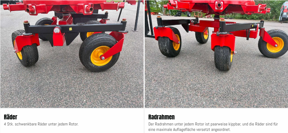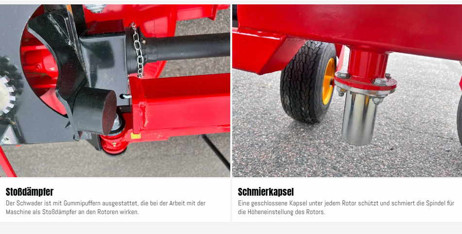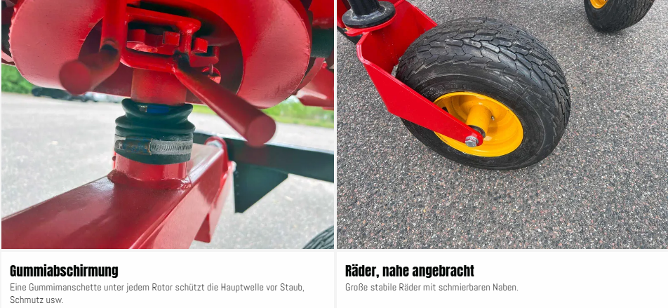 Der Rotor ist nach dem gleichen Prinzip aufgebaut wie unsere beliebten und bewährten TI-Modelle, die aus einer offenen Neigungsführung und Nylonrädern bestehen, und ist daher leicht zu warten. Jeder Rotor hat eine separate stufenlose Höhenverstellung und ist mit 9 Armen mit je 3 Scheibenfedern ausgestattet.