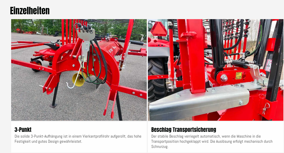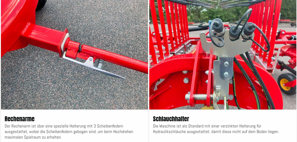 Die schnelle Umstellung von Feldarbeit auf die geringe Transportlänge erhöht die Effizienz. Dies macht sie ideal für Landwirte mit mehreren kleineren Feldern, da sie schnell ein- und ausgeklappt werden kann, was sie sehr flexibel macht.