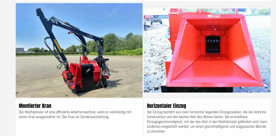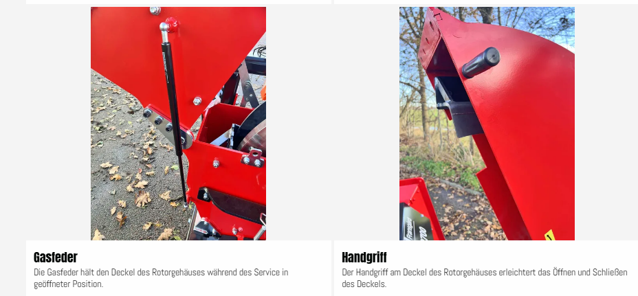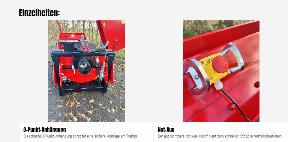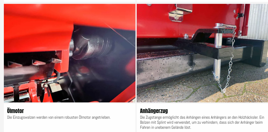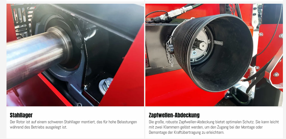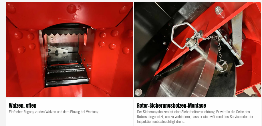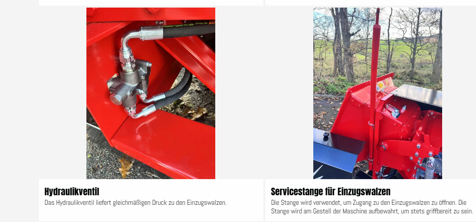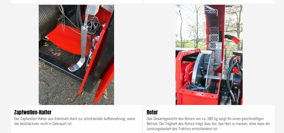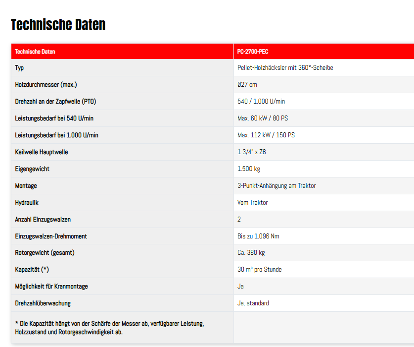 Dieser traktormontierte Pellet-Holzhäcksler mit 360°-Scheibensystem kann Baumstämme bis zu 27 cm Durchmesser verarbeiten. Er ist für den Krananbau vorbereitet, um die Maschine zu füttern. Ihre Arbeit wird durch den Einsatz beispielsweise eines Forstkrans erleichtert. Die zwei Einzugswalzen werden von der Hydraulik des Traktors angetrieben. Der robuste Hauptrahmen der Maschine sorgt für einen stabilen und zuverlässigen Häckselprozess.