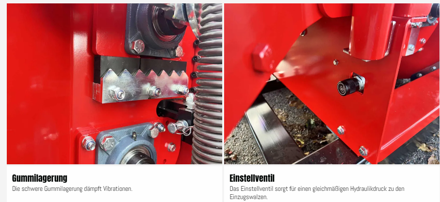 Jede Einzugswalze wird von einem eigenen Hydraulikmotor angetrieben, und die Einzugsgeschwindigkeit kann stufenlos nach Bedarf eingestellt werden. Zusammen mit der Drehzahlüberwachung sorgt dies für eine optimale Anpassung an die jeweilige Aufgabe. Die Einzugswalzen sind fernsteuerbar und können vom gleichen Bedienungsstand aus gesteuert werden wie beispielsweise ein montierter Forstkran.