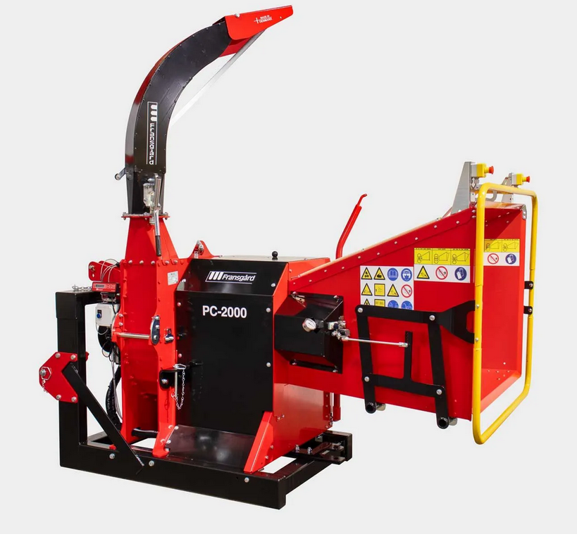 Dieser traktormontierte Holzhäcksler, PC-2000-SEH von FRANSGARD, kann Baumstämme mit einem Durchmesser von bis zu 20 cm verarbeiten. Der Fransgard Häcksler wird manuell über den großen Einfülltrichter zugeführt. Der robuste Hauptrahmen sorgt für stabiles und zuverlässiges Häckseln.