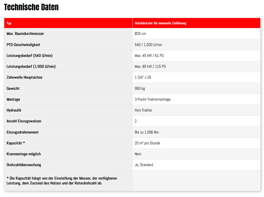 Eine starke Lösung für Benutzer, die Holz einfach in Hackschnitzel umwandeln möchten, ohne spezifische Qualitätsanforderungen an die Hackschnitzel zu stellen.
