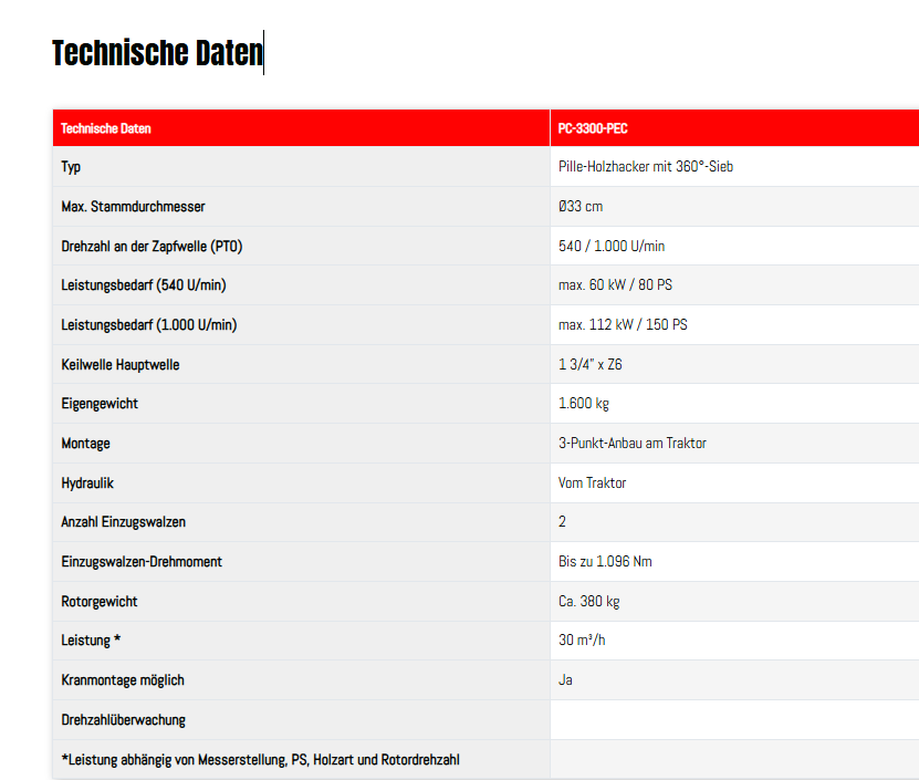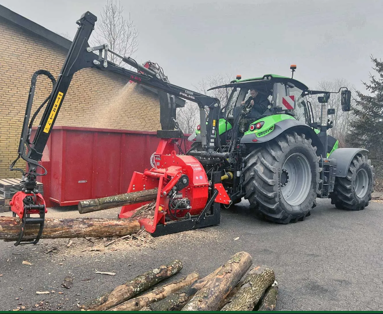 Dieser traktormontierte Pille-Holzhäcksler mit einem 360°-Siebsystem verarbeitet Stämme mit einem Durchmesser von bis zu 33 cm. Der Holzhacker ist für die Montage eines Krans vorbereitet, um das Einführen zu erleichtern und den Arbeitsablauf zu optimieren.