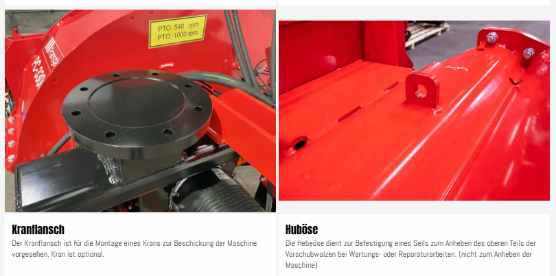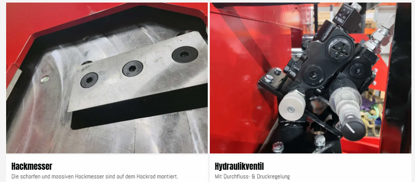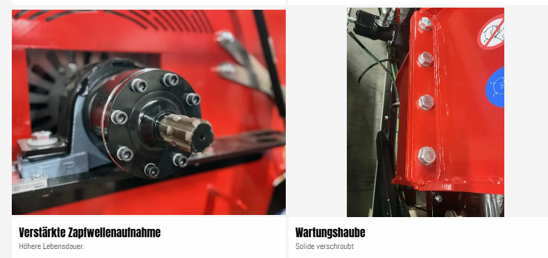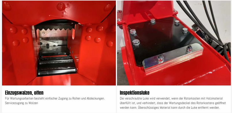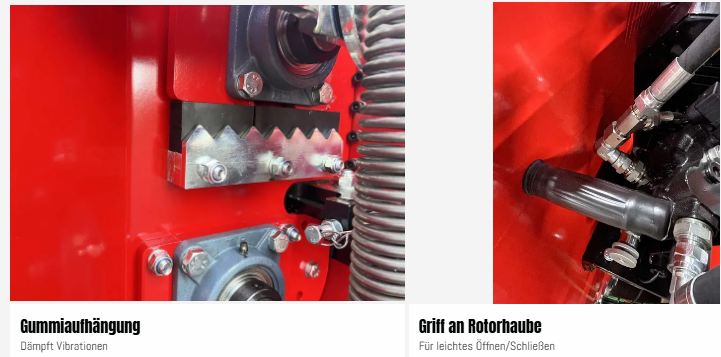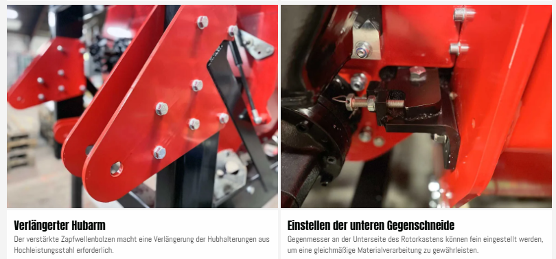 Zwei hydraulisch angetriebene Einzugswalzen, versorgt vom Traktor, und der besonders robuste Hauptrahmen sorgen für eine stabile und zuverlässige Zerkleinerung. Die Konstruktion ist an allen wichtigen Punkten verstärkt.
