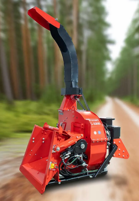 Dieser traktormontierte Fransgard PC-Holzhäcksler mit einem 360°-Siebsystem verarbeitet Stämme mit einem Durchmesser von bis zu 33 cm. Der Holzhacker ist für die Montage eines Krans vorbereitet, um das Einführen zu erleichtern und den Arbeitsablauf zu optimieren.